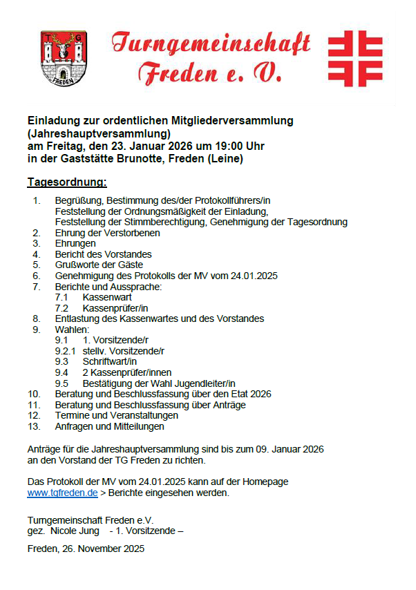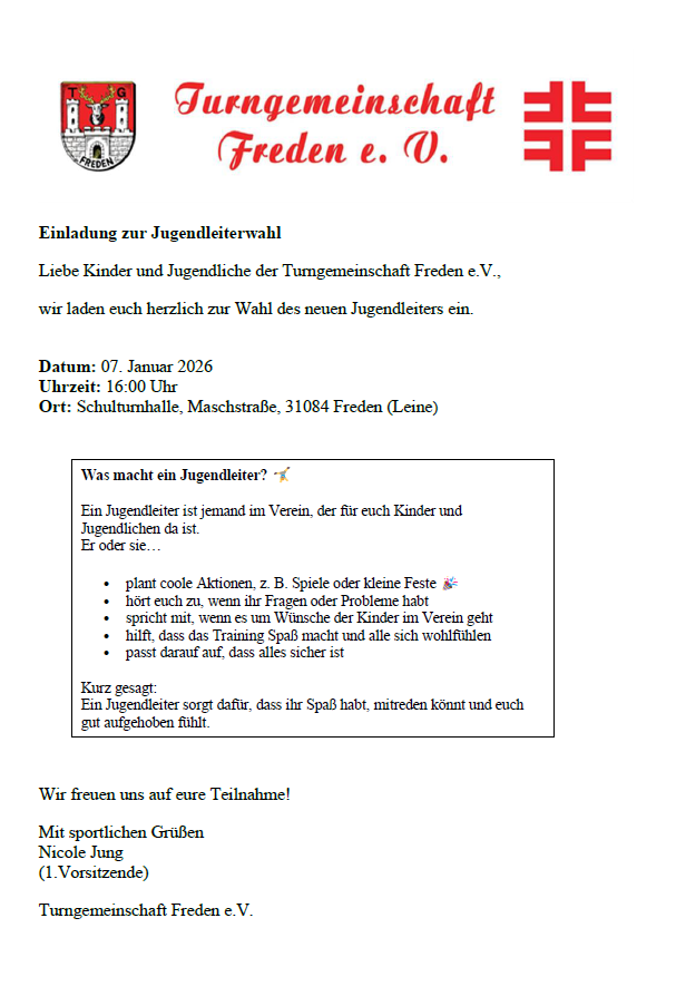 Die Mädchen der TG Freden spielen in der Saison 2025/26 in der 2. Kreisklasse Mädchen, einer Anfängerinnen Staffel mit Zweiermannschaften, wo sie größtenteils an Blockspieltagen teilnehmen.